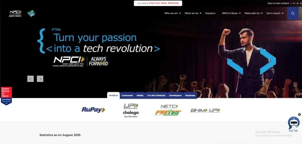 - सबसे पहले NPCI की आधिकारिक वेबसाइट के होम पेज पर जाएं।
